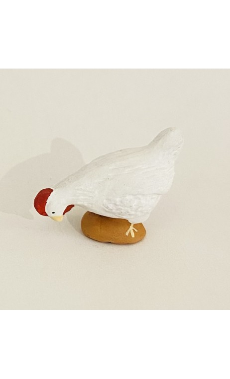 Poule blanche picorante, santon Cavasse-Féry 7cm