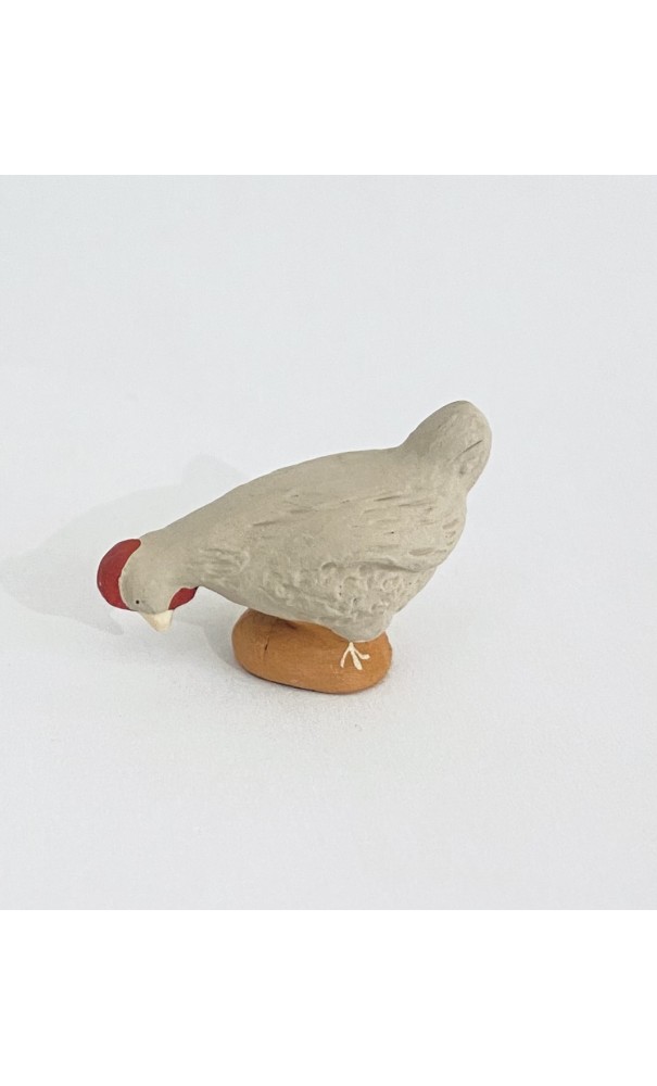Poule beige picorante, santon Cavasse-Féry 7cm