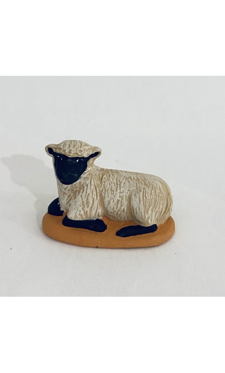 Mouton couché tête noire, santon Cavasse-Féry 7cm