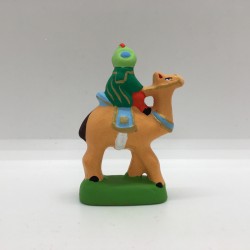 Melchior sur chameau, santon Filippi de 3 cm en terre crue, peint à la main.