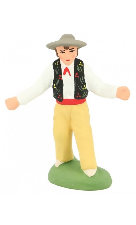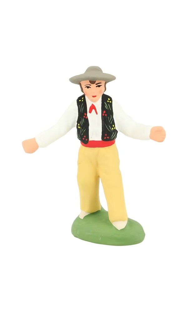 Homme farandole chapeau, pantalon jaune et gilet noir, santon Marcel Carbonel n° 2 (7 cm)
