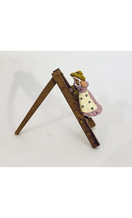Femme rouge olives sur échelle (robe mauve), santon Richard 4cm