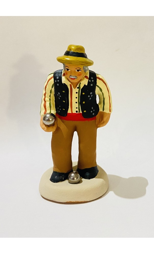 Bouliste Panisse gilet bleu, santon Richard 7cm