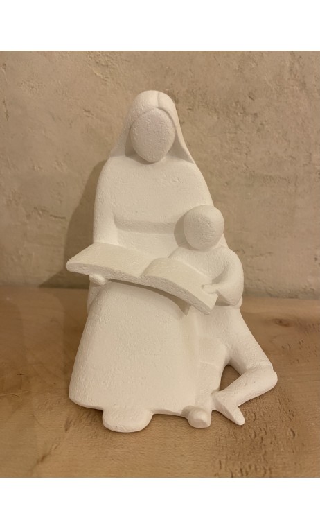 Statue Lecture de Marie à Jésus, pierre reconstituée, édition N. Callard