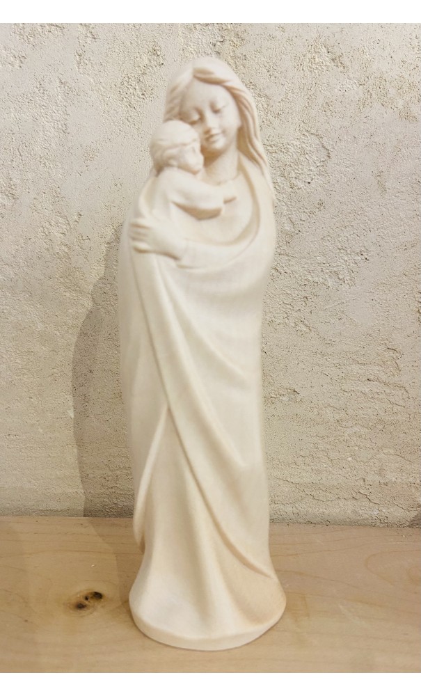 Une très belle statue de Marie qui porte Jésus blotti contre elle.