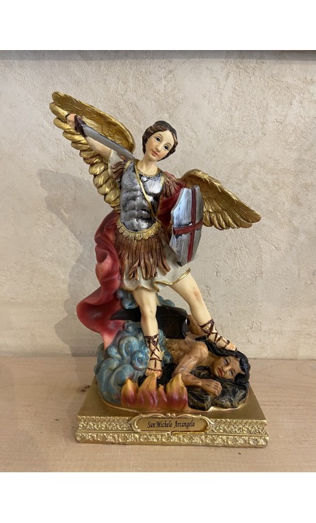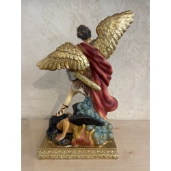 Statue Saint Michel. En résine, couleur. Hauteur max: 22 cm (jusqu'en haut de l'aile)