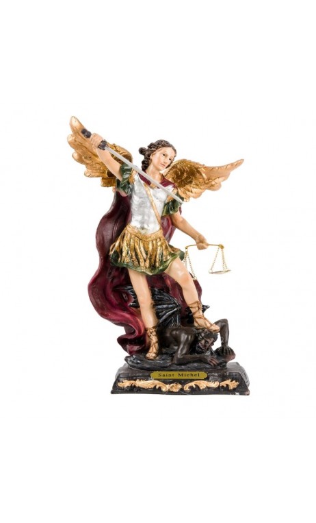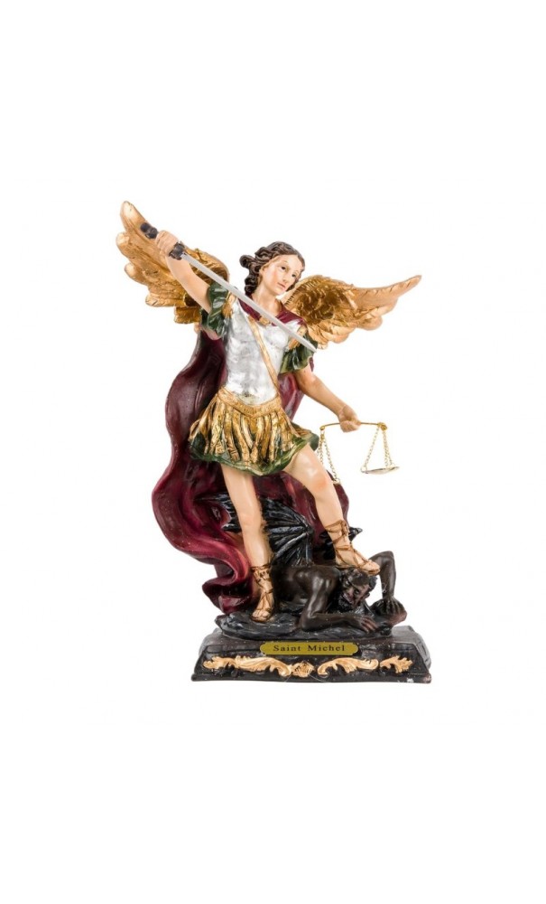 Statue de Saint Michel en résine couleur avec balance-13cm