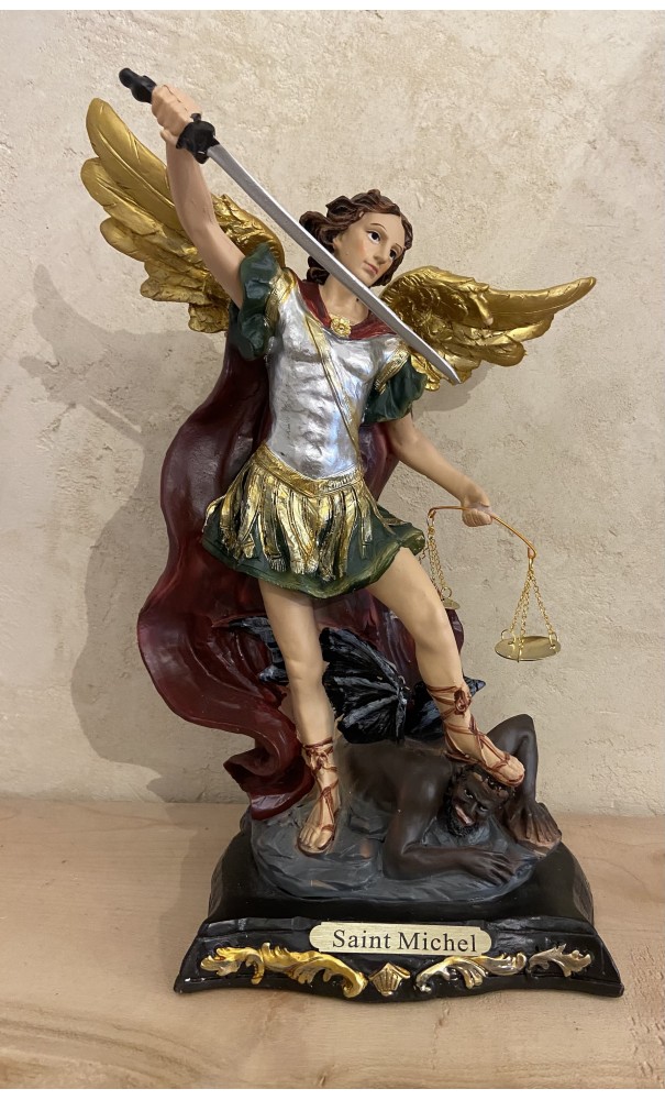 Statue de Saint Michel en résine couleur avec balance-30cm