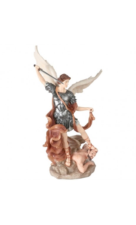 Statue de Saint Michel en polystone polychrome peint à la main (style biscuit)-26cm