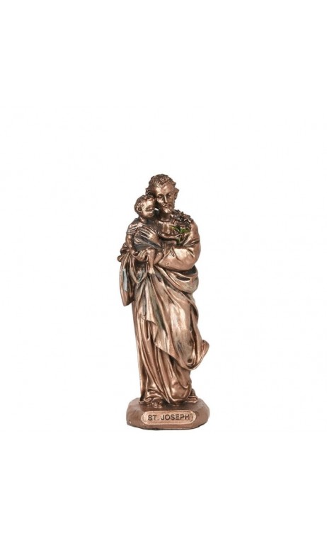 Statue Saint Joseph. En résine, couleur bronze. Hauteur max: 10 cm